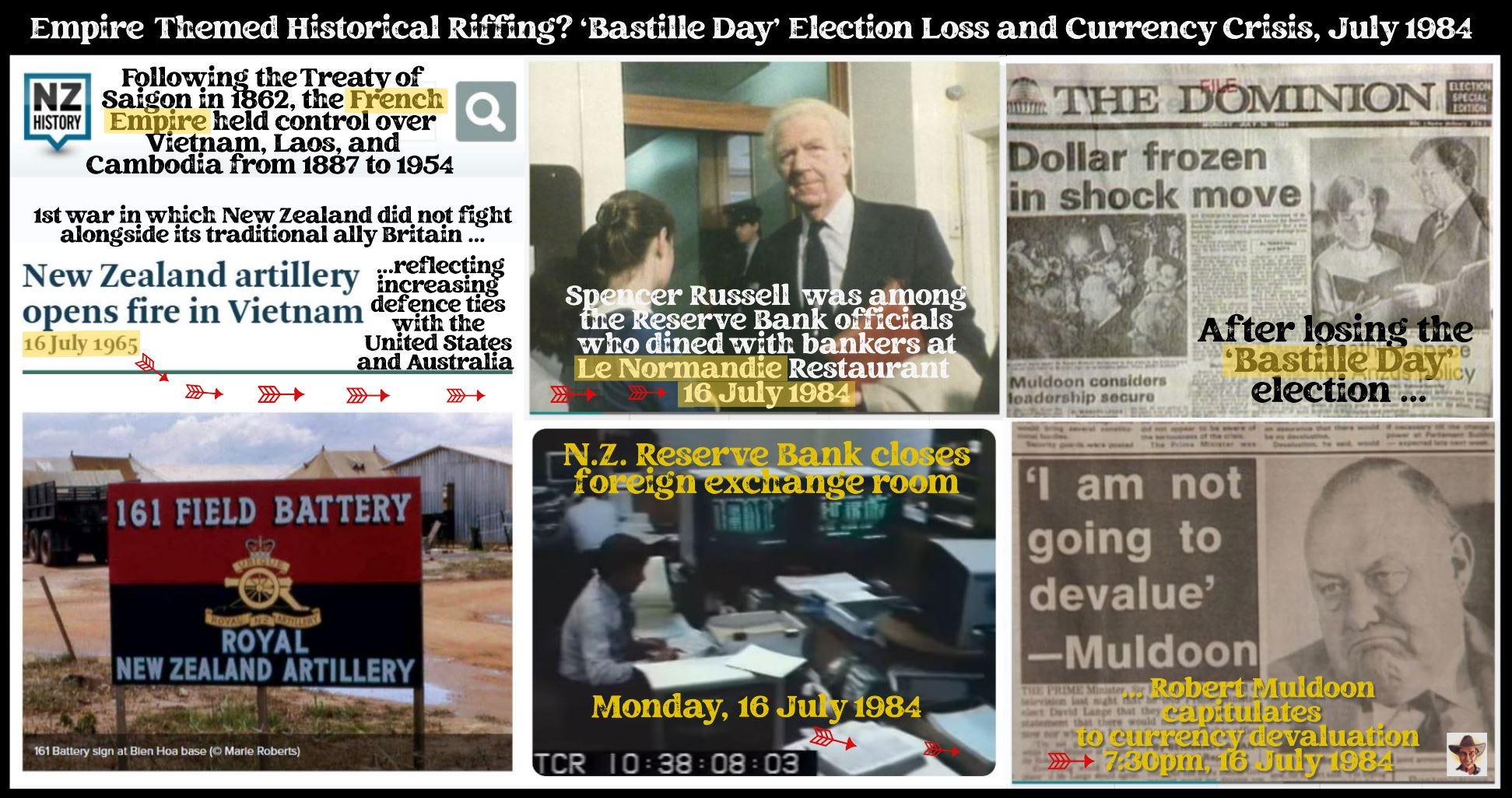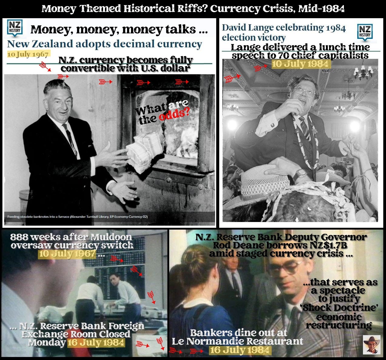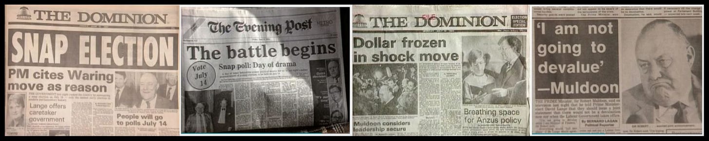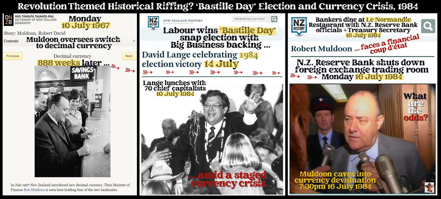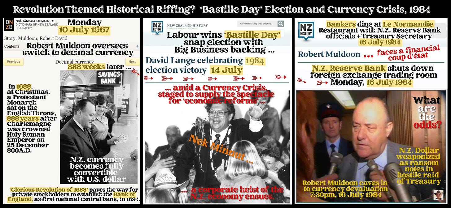 Ergo, there was a subtext of war, revolutions and betrayals underpinning the Bastille Day Election of 1984, that came bundled with the N.Z. Dollar weaponized as ransom notes in a hostile raid on the state Treasury to construct a spectacle of crisis.