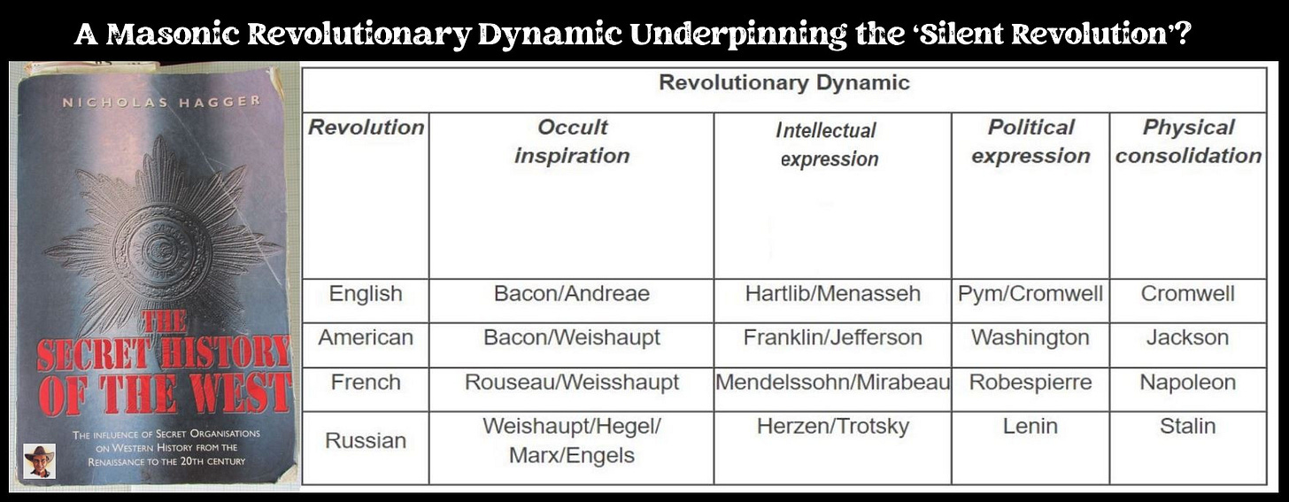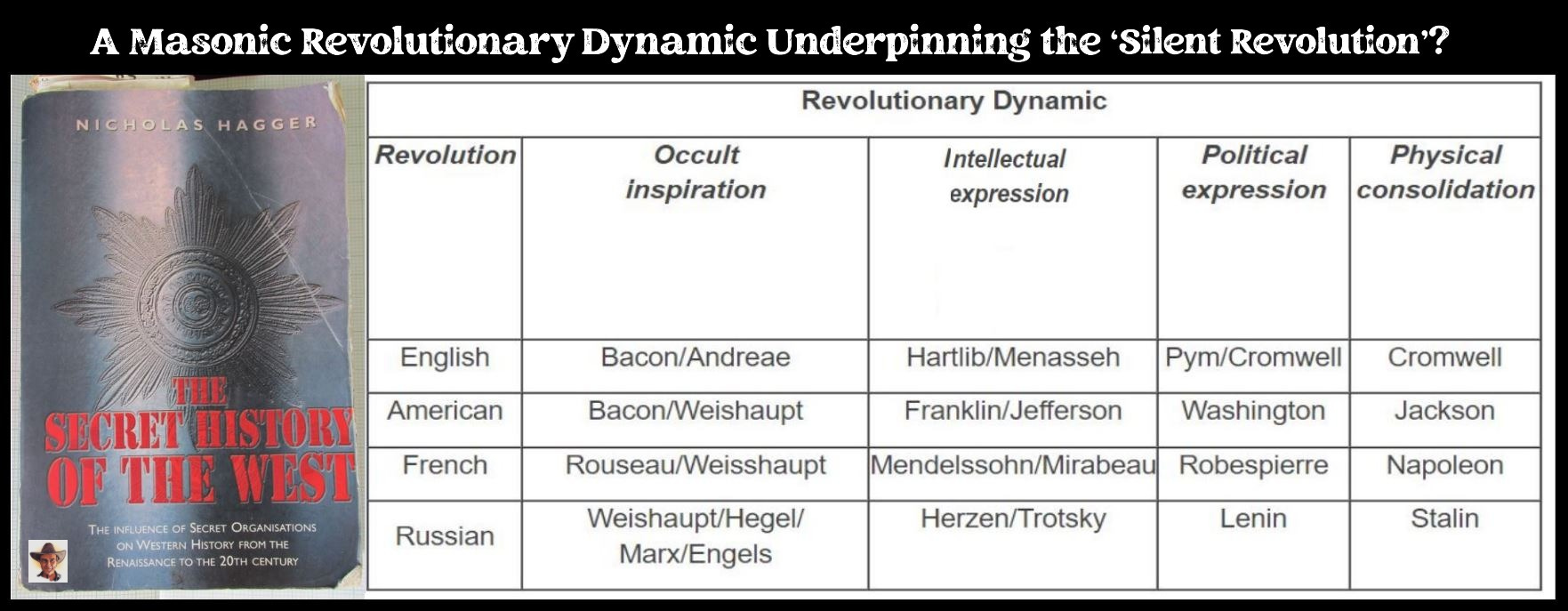 Crucially, Sionist Rosicrucian Freemasonry came to rule over the British Monarchy and the Church of England, after having successfully achieved a political and business merger with the Dutch in 1688, as Nicholas Hagger found in his epic study, The Secret History of the West, that modelled for the patterns of revolutions, how secret societies plotted them and reasons for the subterfuge. Sionist Freemasonry is a revolutionary force committed to forging a universal empire under the rule of one monarch. French Templar Freemasonry developed into a revolutionary force committed to forge a universal empire under the rule of one federal republic. Thus, a hidden ‘Masonic Schism’ underpinned eight millenia of revolutions, wars, and coups d’état.