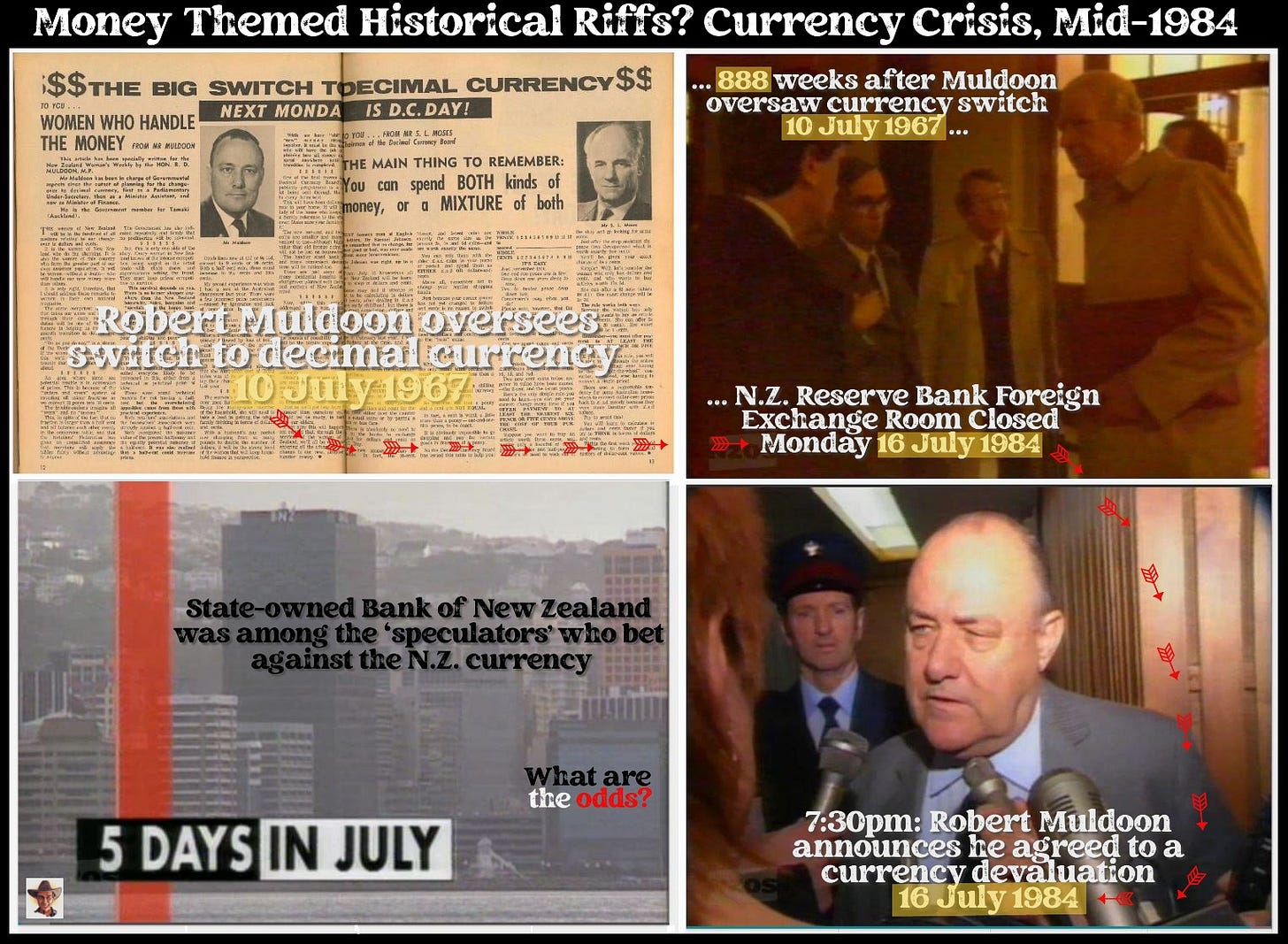 The date, July 10, was potent, because it was the 17th anniversary since New Zealand’s currency became fully and easily convertible with the US FED dollar when it switched from the imperial pound to the decimal dollar, since this changeover was overseen by Robert Muldoon, as Under-Secretary of Finance (4 March 1967 — 8 December 1972).
