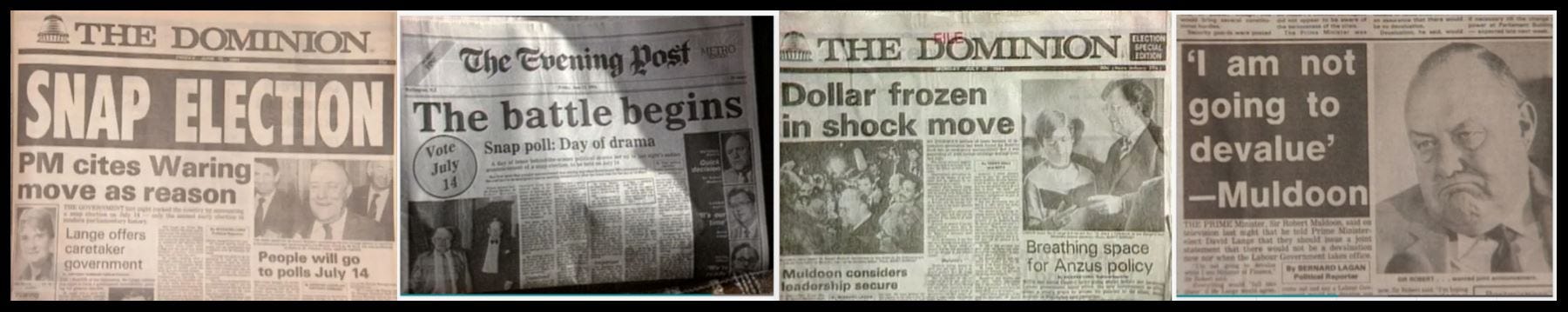 Thus, a siege of the New Zealand economy began in earnest with a speculative attack on the New Zealand dollar throughout the 1984 election campaign. An atmosphere of crisis was conjured in the immediate aftermath of the Lange-led Labour Party election victory of July 14 1984, to justify far-reaching economic ‘reforms’.