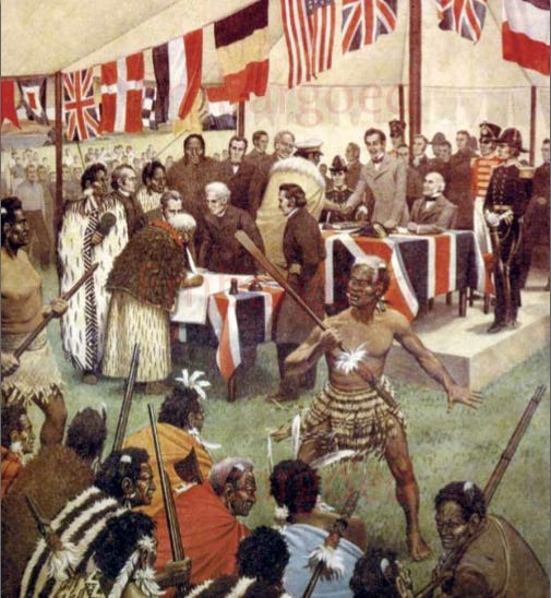 This “Deep History of Waitangi” also reveals the novel twist of swindling full paper sovereignty from an entire people, with the brazen expectation that a chiefly majority would not be gained by peddling the parchment copies around the coastline of the South Pacific Archipelago.