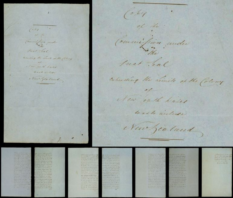 (2) a Letters Patent of Amended Commission to Governor George Gipps making him Governor of New Zealand, a new dependent colony of New South Wales, signed by Her Majesty’s Command bearing Lord Normanby’s name on July 30th 1839;