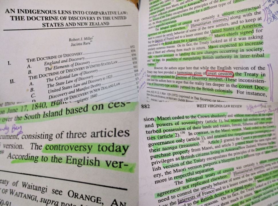 Moreover, Māori at Waitangi were unaware that a secret piece of international law, known today as the Doctrine of Discovery, was applied during the 1840 Waitangi Treaty Theatre. This Discovery Doctrine was ‘transported’ on both tracks, and intersected briefly at Waitangi, where time had been weaponized to gain control over a new territorial-jurisdictional space for the British Masonic Empire.