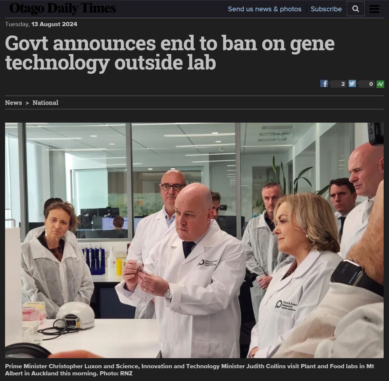 By pulling out all stops in a small developed geographically isolated archipegalo, New Zealand’s longstanding role as a test facility for the world is pivoting to full-monty technocracy, with experiments to field trial in-situ real-time genetic engineering, unlabelled GMOs, and lab releases of gene edited organisms into the food supply, medical settings and in the argiculture, horticulture and aquaculture environments.