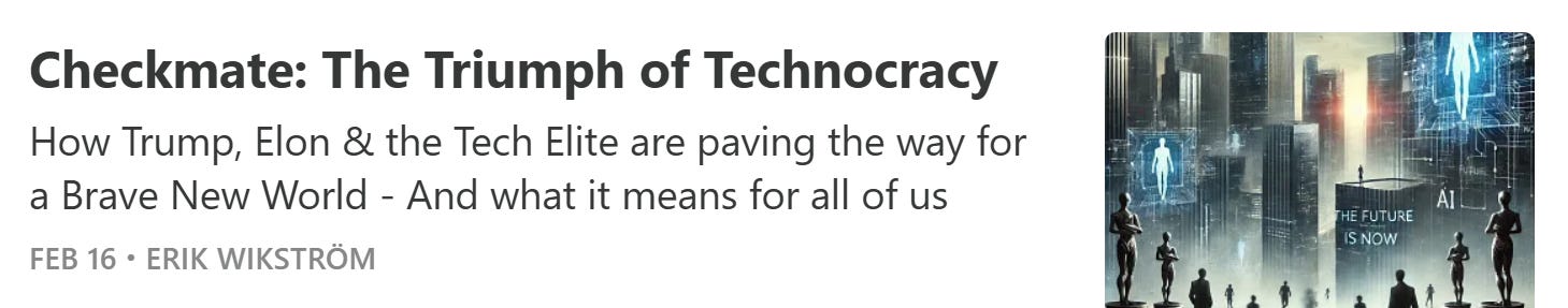 “those who currently have more ‘private property’ than the rest of us put together who are most eager to rollout Technocracy. It is the parasite class’ exploitation of Technocracy that renders it the ultimate fascist dystopia.” Iain Davis, What is Technocracy? 4 Nov. 2024
