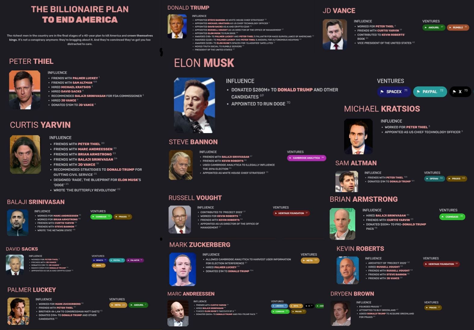 Admiral John Poindextor had led the weapons transfers to Iran in the Iran-Contra Affair, and he oversaw people such as Lieutenant-Colonel Oliver North. The Iran-Contra Affair revealed the Reagan Administration secretly facilitated the sale of arms to Iran — which was the subject of an arms embargo, amid the Iran-Iraq War (1980-1988). The proceeds of the arms sales were used to fund the Contras, a right-wing CIA-directed rebel group in Nicaragua. The entire operation was ultimately funded with drug money, since the flights with guns to the Contras were returning with cocaine to the United States through Mena Airport, Arkansas, among other sites. According to former Newsweek journalist Robert Parry, the Nicaraguan Contras were but one militia in a contra-network of fighters in central and south America that were funded, armed, and trained under the auspices of CIA black operations, as he detailed in his 1999 book, Lost History: Contras, Cocaine, the Press and ‘Project Truth’.In his Nerd Reich podcast, Gil Duran lays out Silicon valley’s playbook to destroy the mangled 1st Republic of the United States, in accordance with the subversive vision of Curtis Yarvin, known as Palantir founder Peter Thiel’s ‘house philosopher’. In 2012, Yarvin called for a purge of Government employees, the blueprint for Musk’s DOGE.