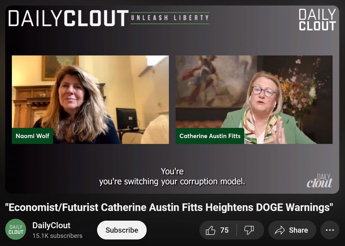 Indeed, Musk has fired 11 inspector generals, including all those at agencies that were investigating his companies, says Catherine Austin Fitts, a former Assistant Secretary at the U.S. Department of Housing and Urban Development, in the Bush I Presidency.