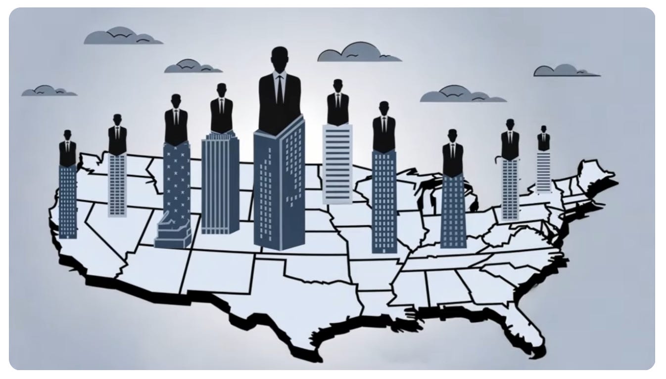 They work in accordance with a plan to accelerate the pivot to a technofeudalist system where the hi-tech science of social engineering directs the re-organization of America into 13 megaregions with megacities. This plan fuses with the vision to construct Network States, which are corporate-run territories owned by joint stock companies, and each to be ruled by a CEO Dictator, if the vision of Curtis Yarvin — known as Palantir founder Peter Thiel’s ‘house philosopher’ — comes to fruition.