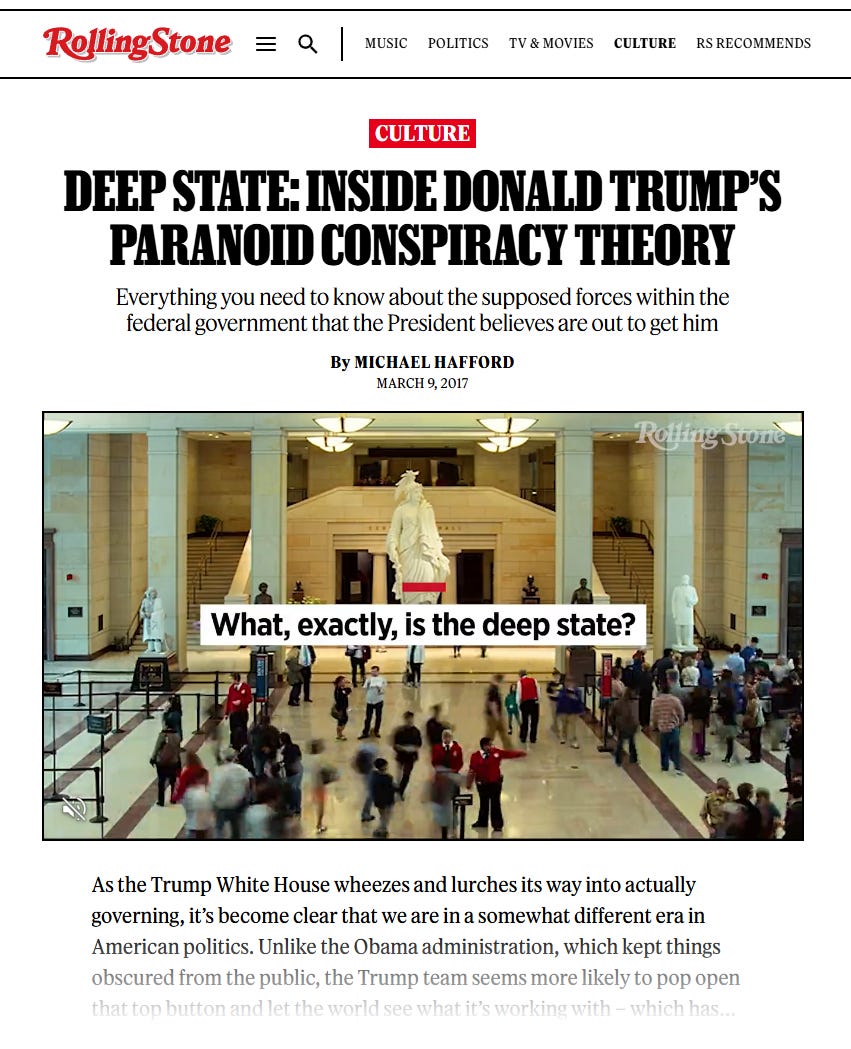 America’s media played along in the polarizing theatrics — that pitched the blame on Trumpettes — to frame Trump’s rhetoric about a deep state as a “paranoid conspiracy theory”. Trump cast the phrase to suit his role as a deep state political marionette.